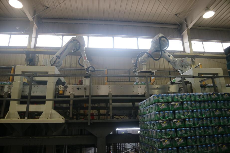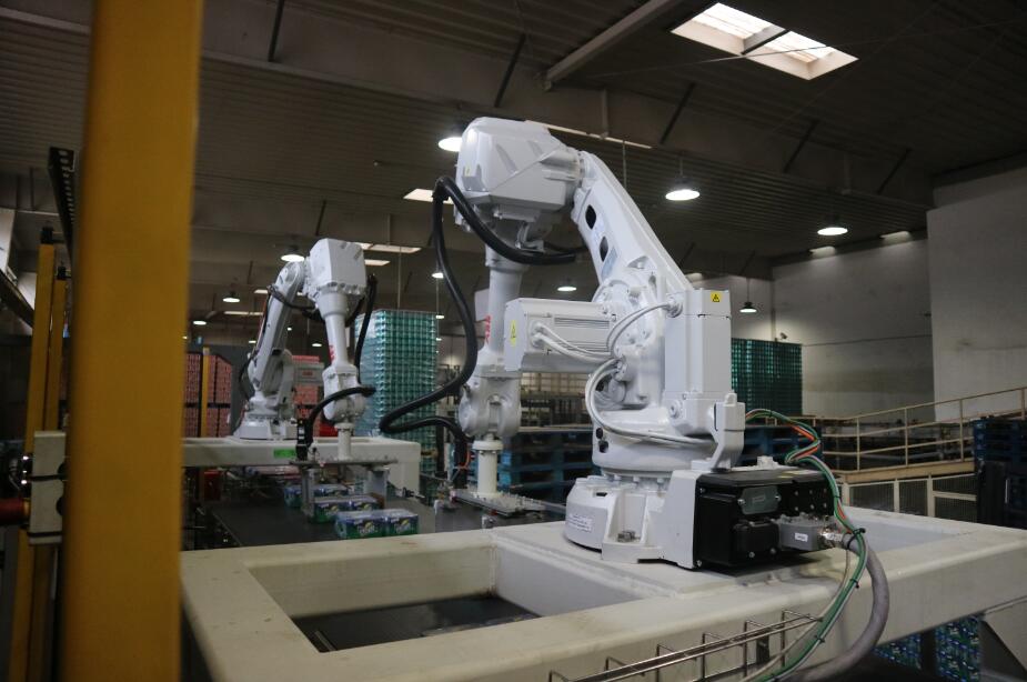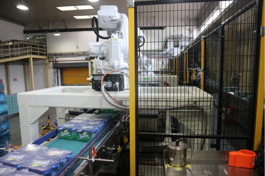 此設(shè)備是南京恒昌根據(jù)客戶的實(shí)際需求進(jìn)行定制的,滿足現(xiàn)有普罐9箱、10箱花型、SLEEK CAN、MINI SLEEK CAN13箱花型碼垛需求,并且具備未來2*6、3*4、3*5花型升級功能和生產(chǎn)能力,單臺能力達(dá)到60箱/分鐘。設(shè)備主體采用ABB智能機(jī)器手,通過 SEW伺服電機(jī)帶動雙向絲桿,來驅(qū)動固定在2根進(jìn)口導(dǎo)軌上的夾板,對包型夾護(hù)后由機(jī)器人來進(jìn)行位移分道,轉(zhuǎn)向。設(shè)備運(yùn)行穩(wěn)定,高效,占用空間小,減少了對箱包的碰撞和磨損。